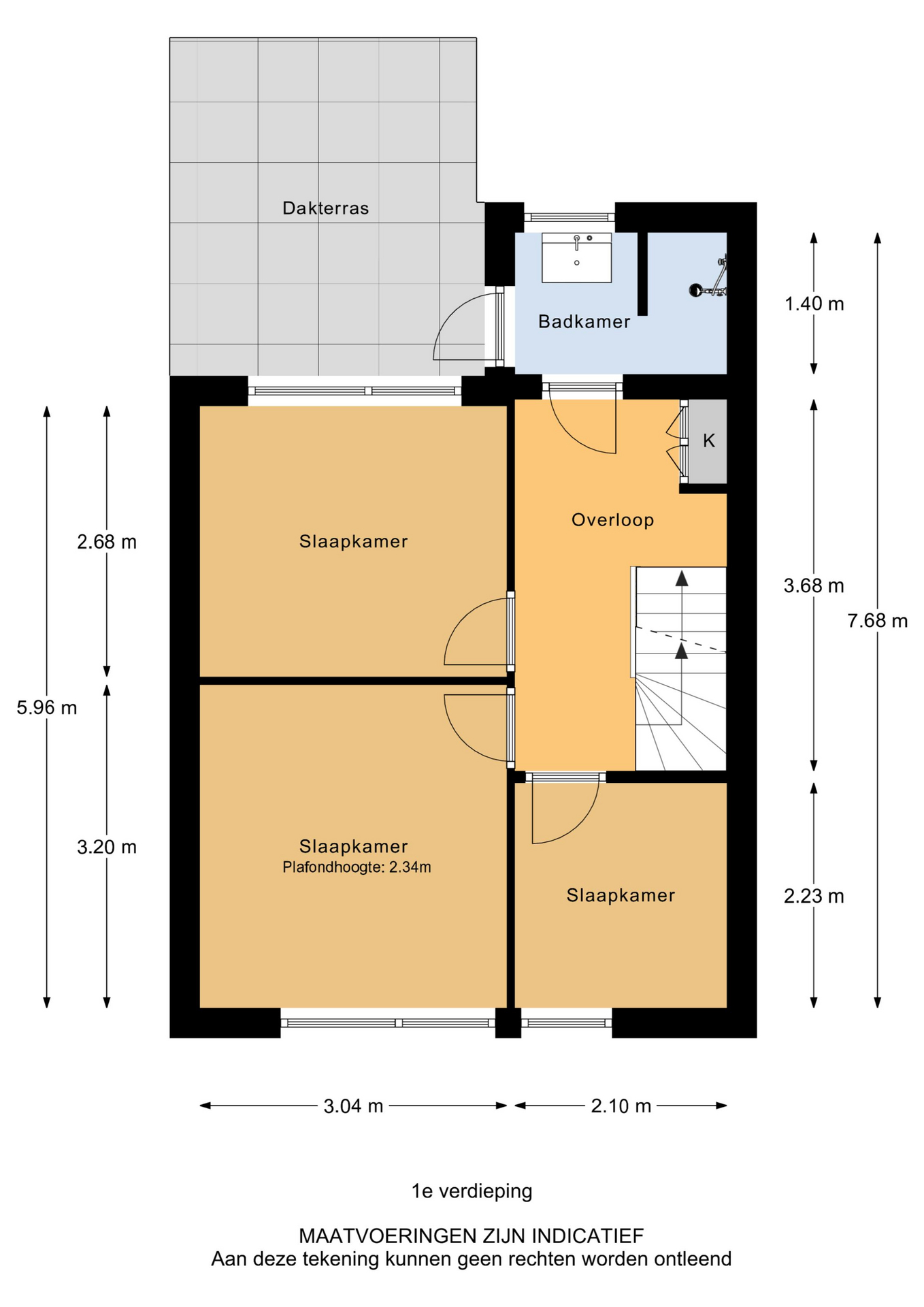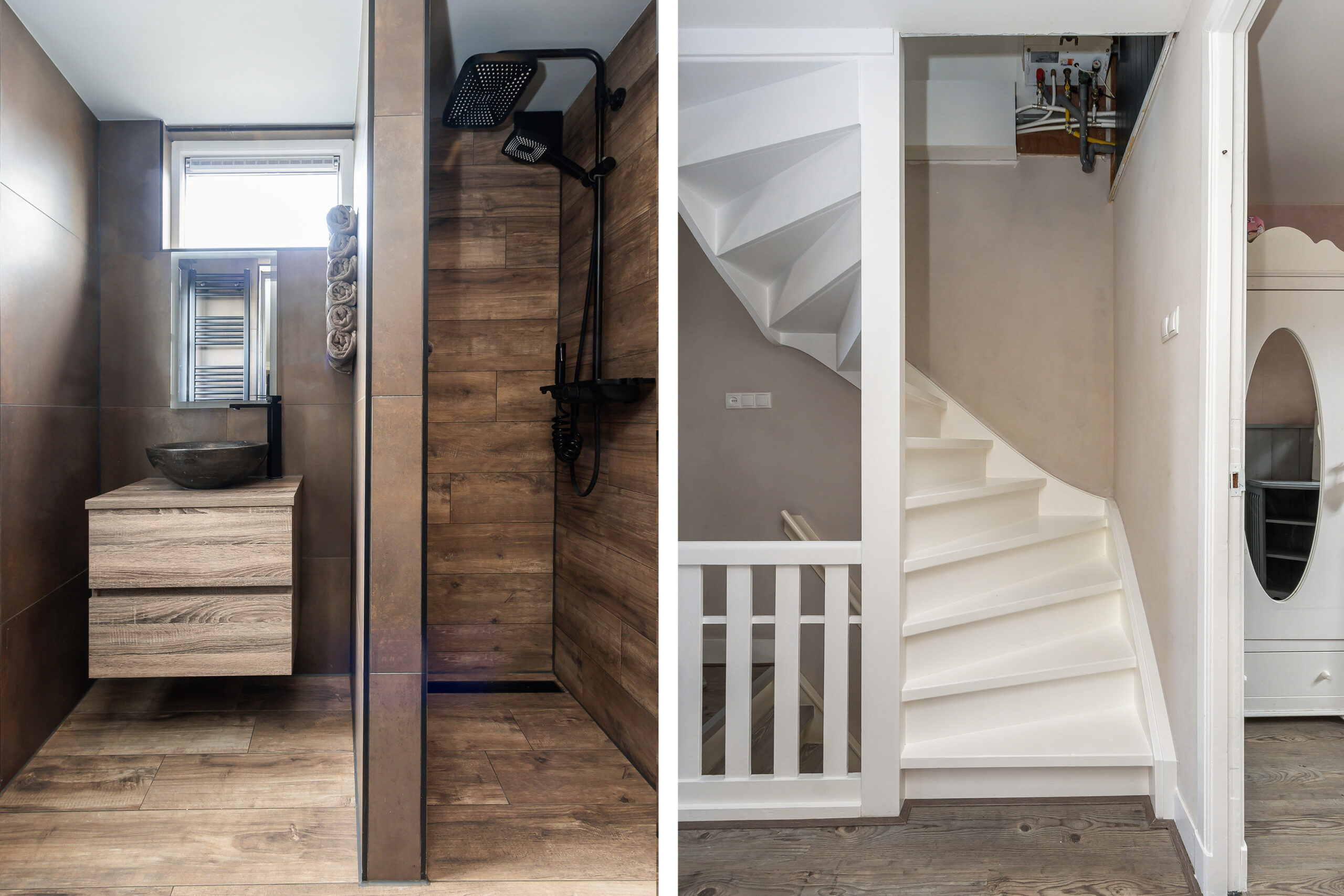 Overloop met vaste kast en toegang tot drie slaapkamers, de badkamer en het dakterras. Twee slaapkamers liggen aan de voorzijde en één aan de achterzijde met airconditioning. Alle slaapkamers zijn afgewerkt met een laminaatvloer. De volledig betegelde badkamer is vorig jaar vernieuwd en beschikt over een inloopdouche en wastafelmeubel. Vanuit de badkamer is er tevens directe toegang tot het dakterras, waardoor u hier heerlijk van het buitenleven kunt genieten. Vanuit de overloop is de vaste trap naar de zolderverdieping bereikbaar.