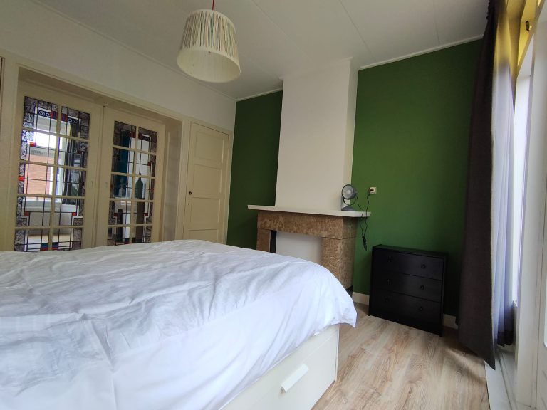 Royale slaapkamer aan de achterzijde van het appartement met openslaande deuren naar het terras welke gelegen is op het Zuidoosten. Verder beschikt de slaapkamer nog over een marmeren schouw en is de vloer afgewerkt met laminaat.