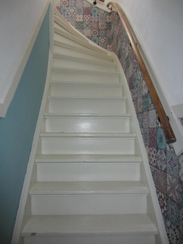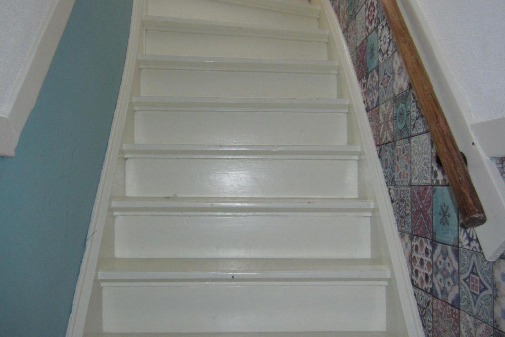 Entree in nette betegelde hal met trapopgang naar de tweede verdieping en meterkast (4 groepen + aardlekschakelaar).
