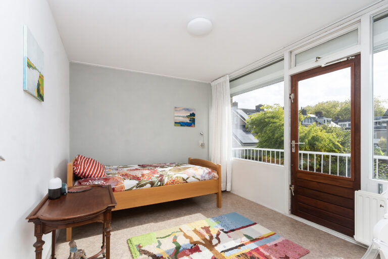 De tweede slaapkamer heeft toegang tot een balkon op het zuidoosten met zicht op de voortuin.