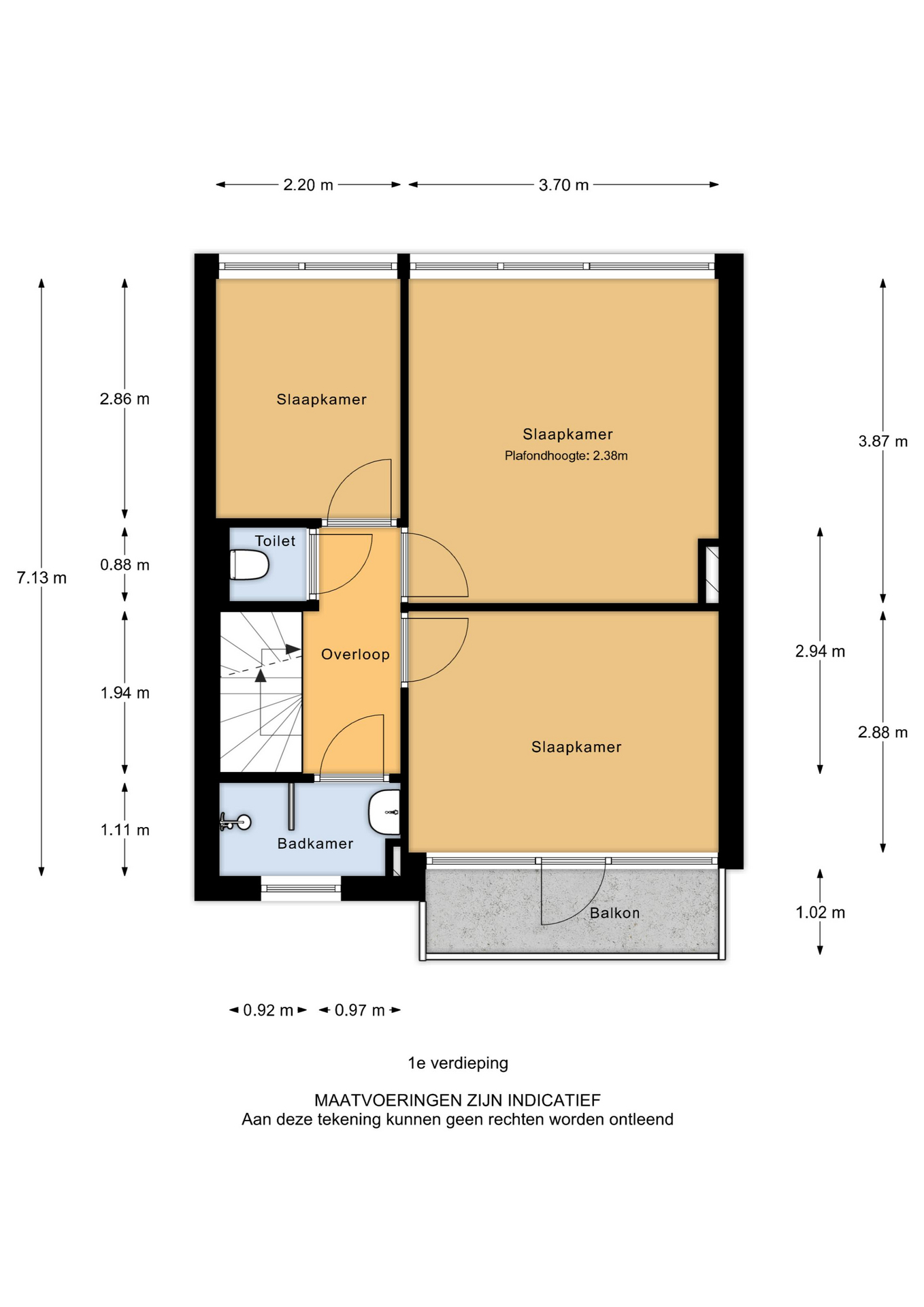 De overloop biedt toegang tot de badkamer, drie slaapkamers en een tweede toilet.