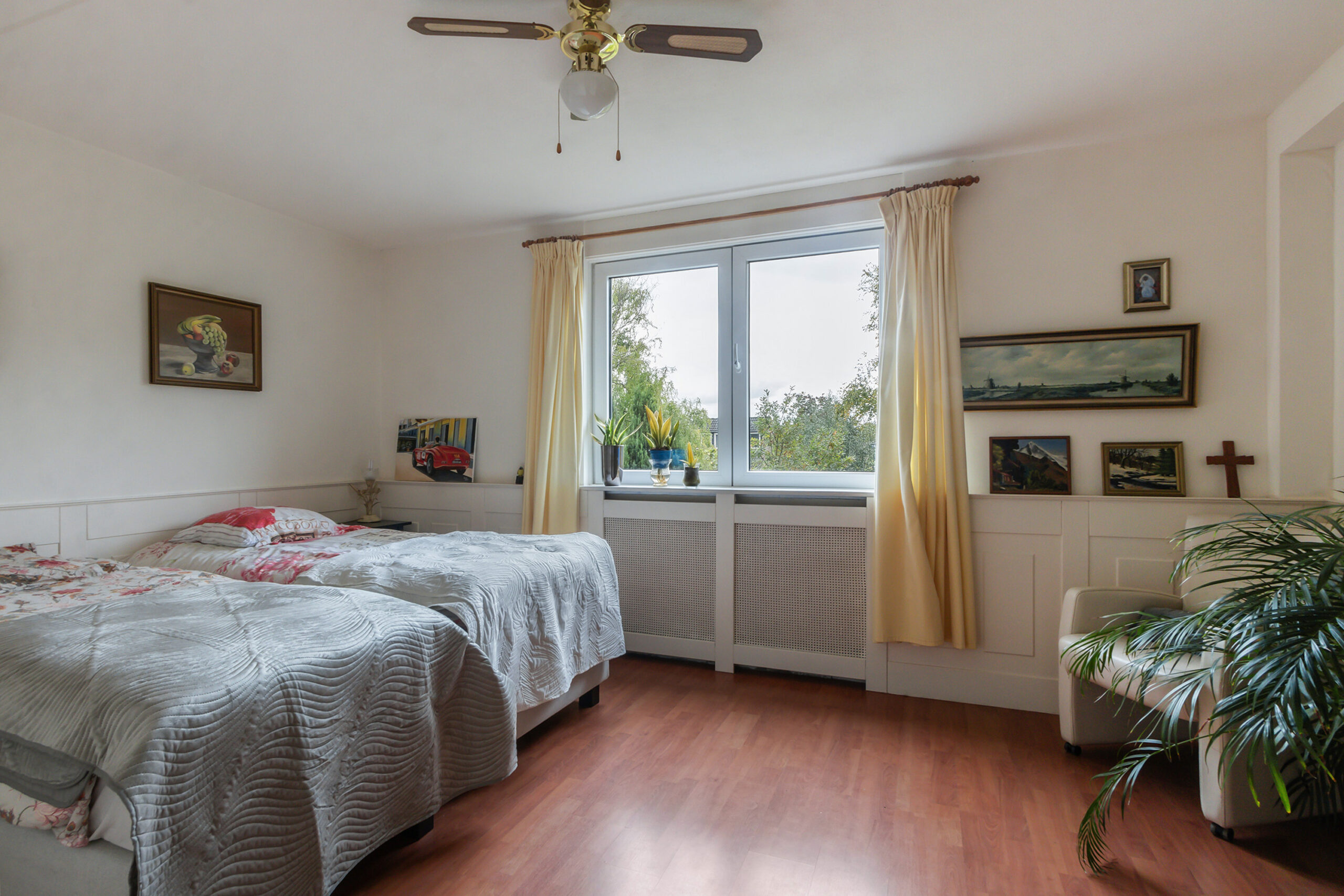 Slaapkamer 1, gelegen aan de achterzijde, voorzien van laminaatvloer.