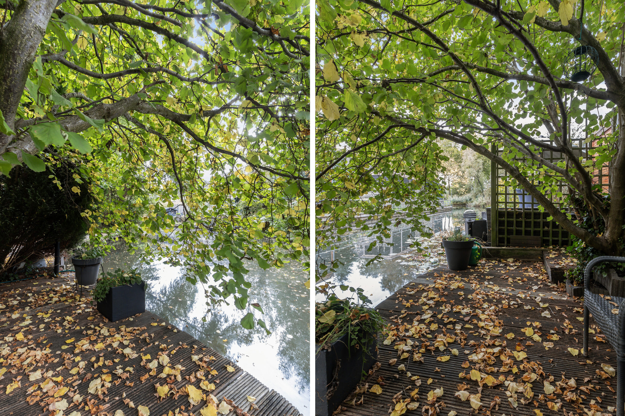 De achtertuin is ruim 8 meter diep, op het zuiden gelegen en voorzien van een vlonderterras aan het water.