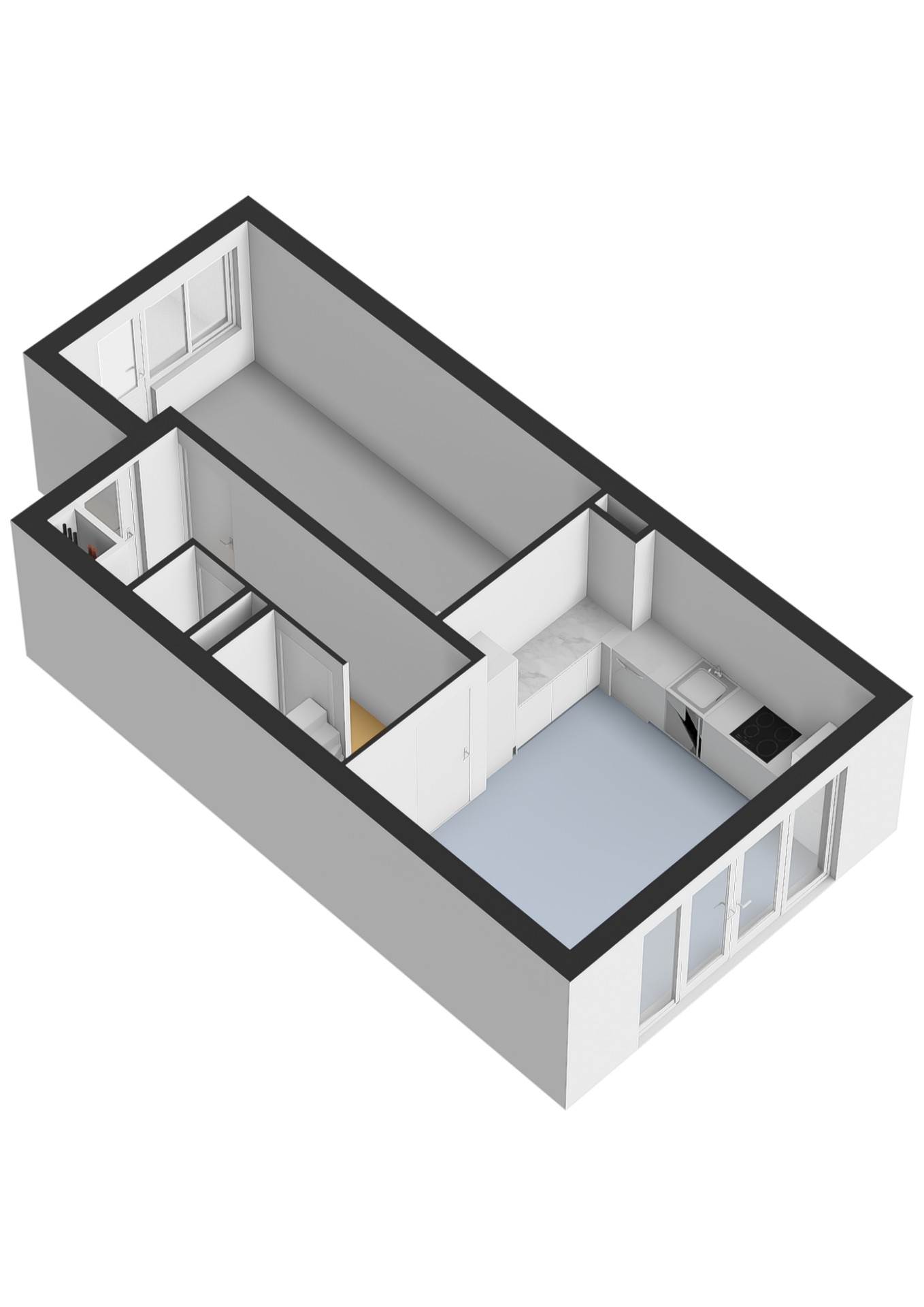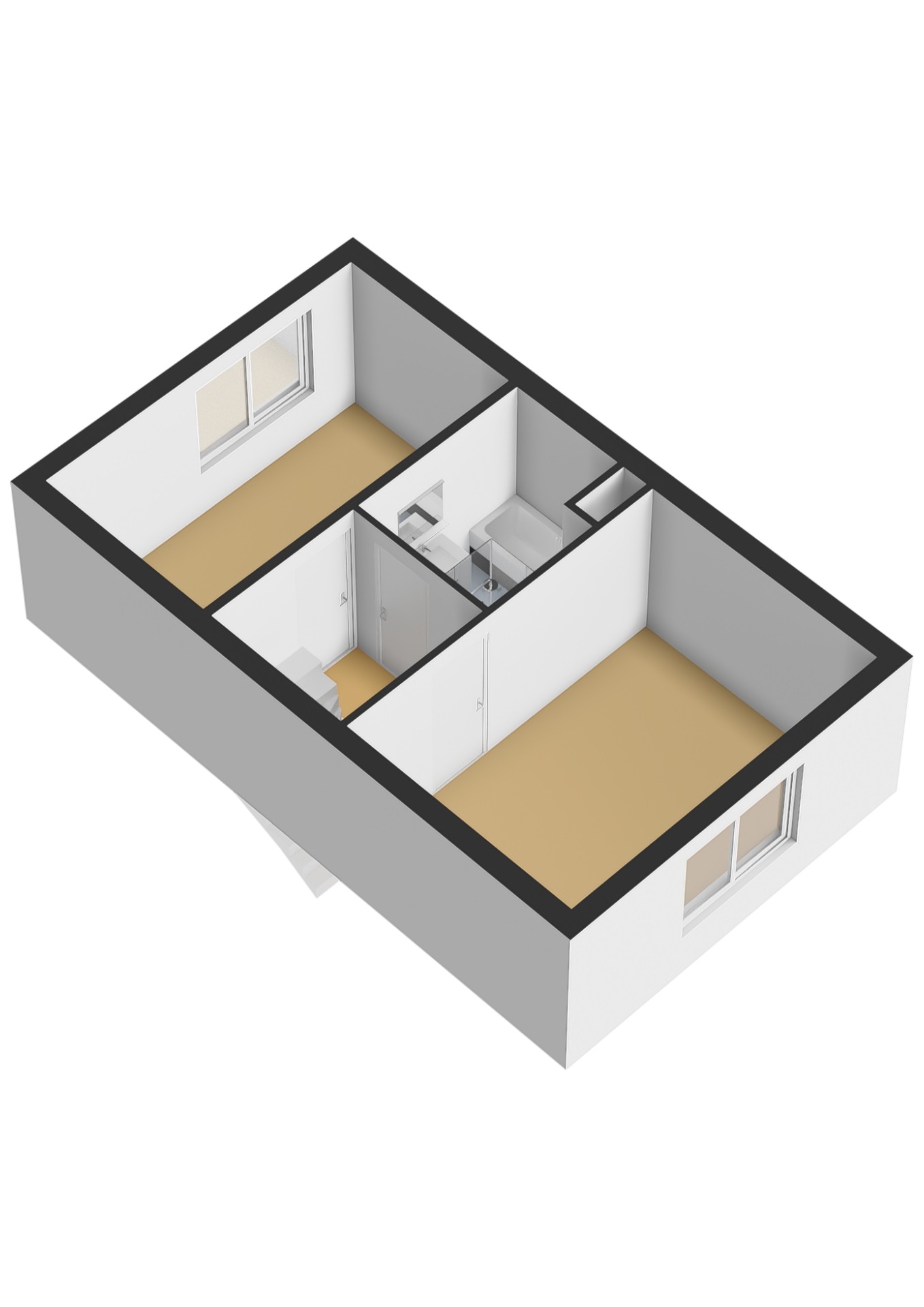 Slaapkamer 3 met laminaatvloer en schuifdeur naar het platte dak.
