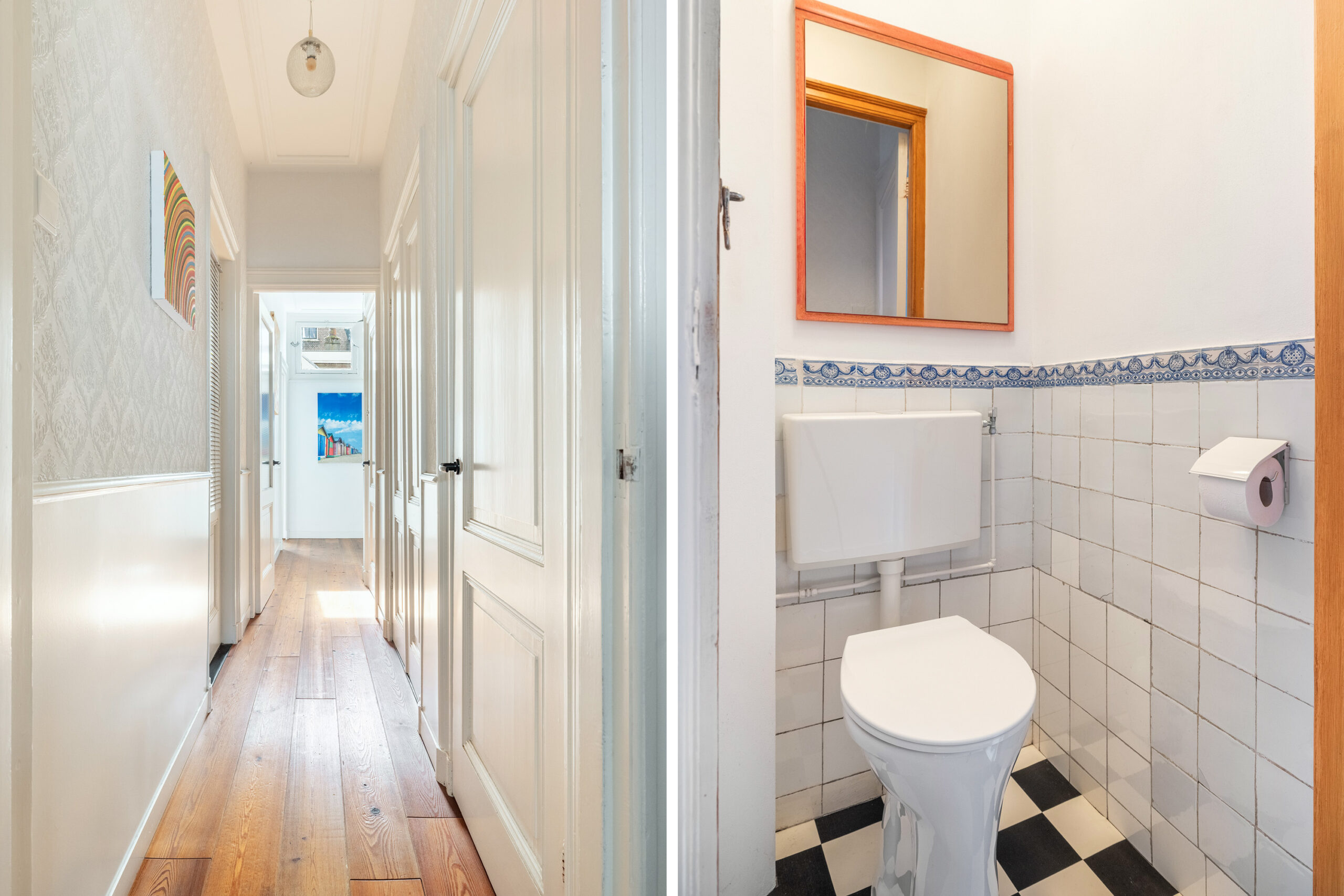 Gang met toilet, kastruimte en toegang tot de kelder en de serre.