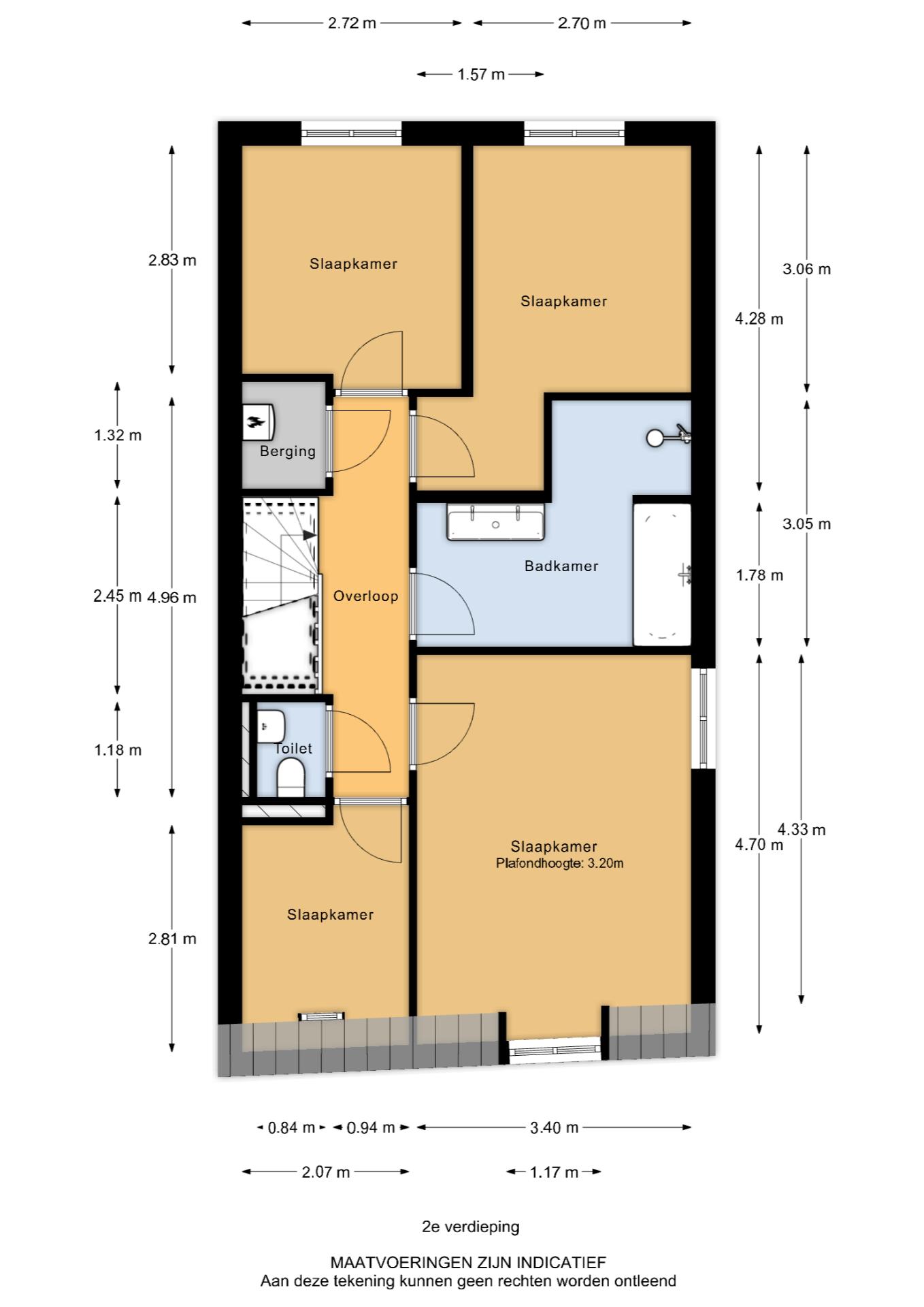 Toilet: Een separaat toilet bevindt zich naast de trapopgang.