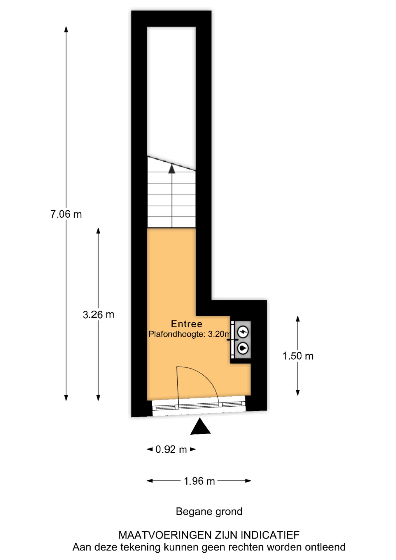 Entree, hal met meterkast en trapopgang naar de eerste verdieping.