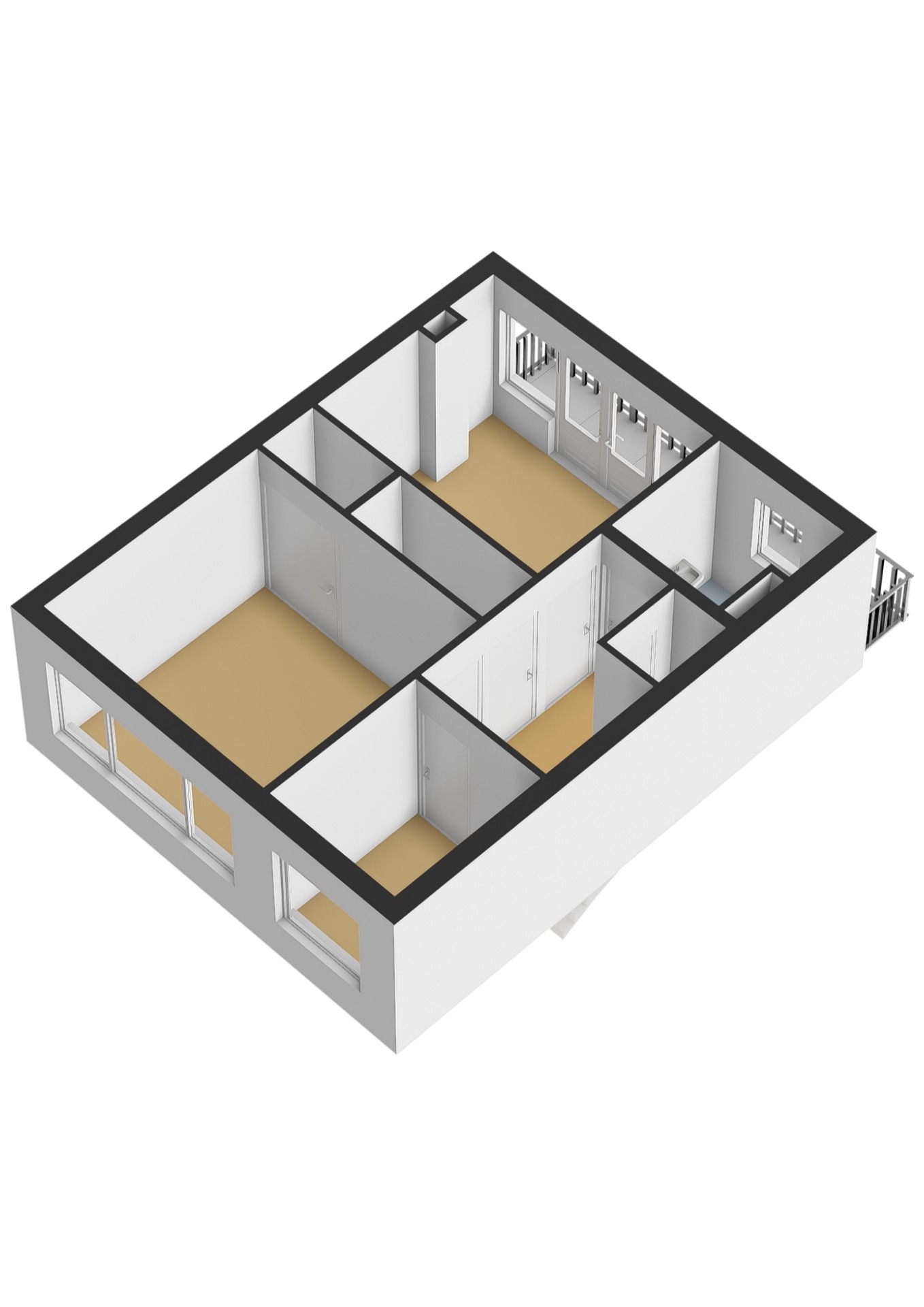 Slaapkamer 2 (achterzijde) met openslaande deuren naar woningbreed balkon.