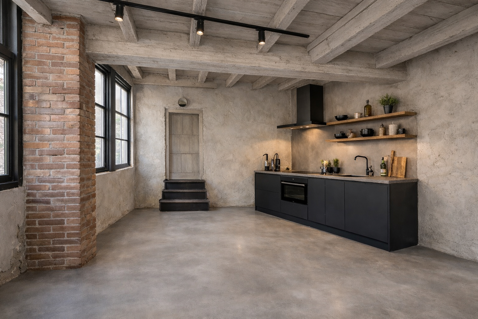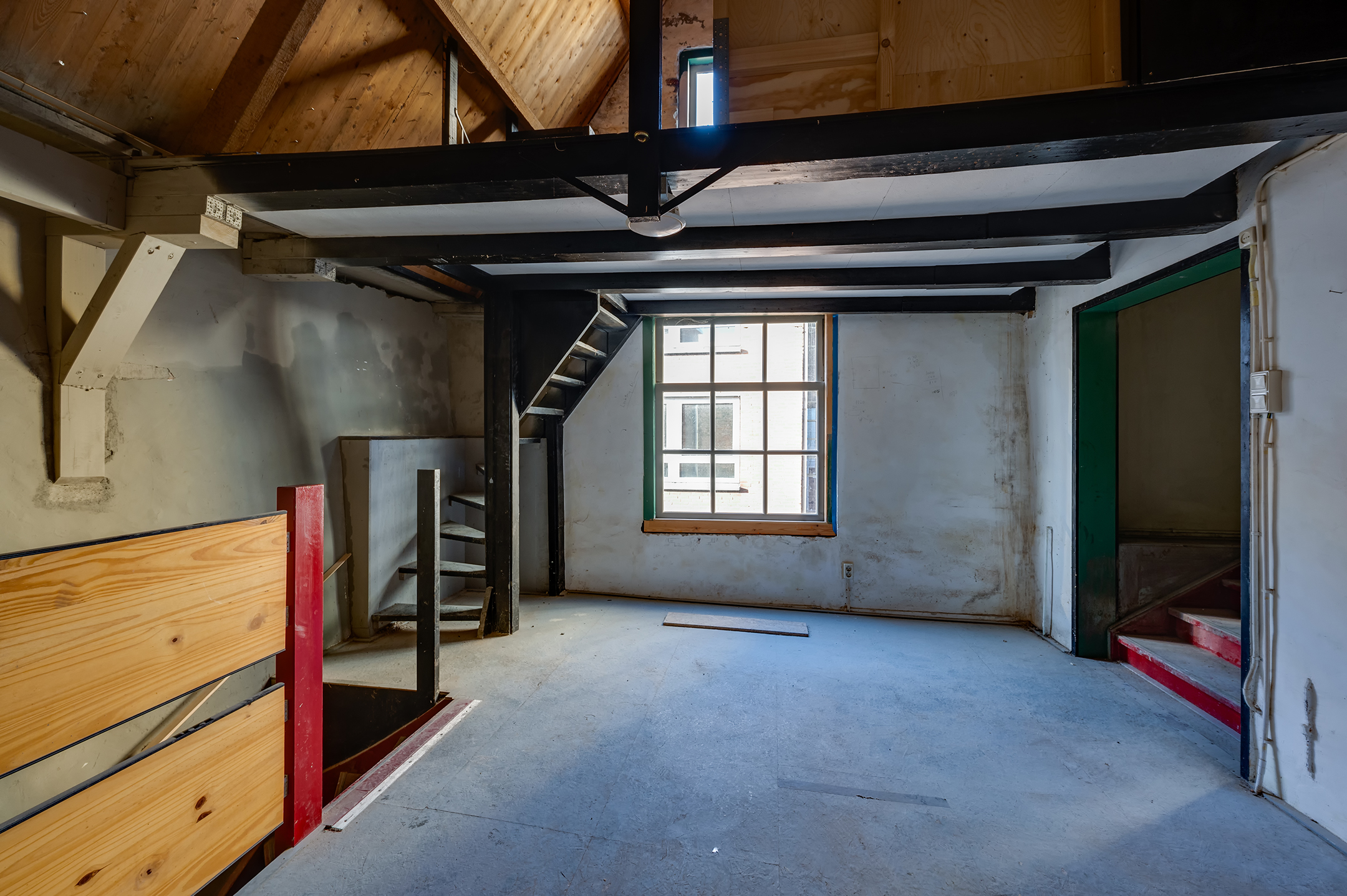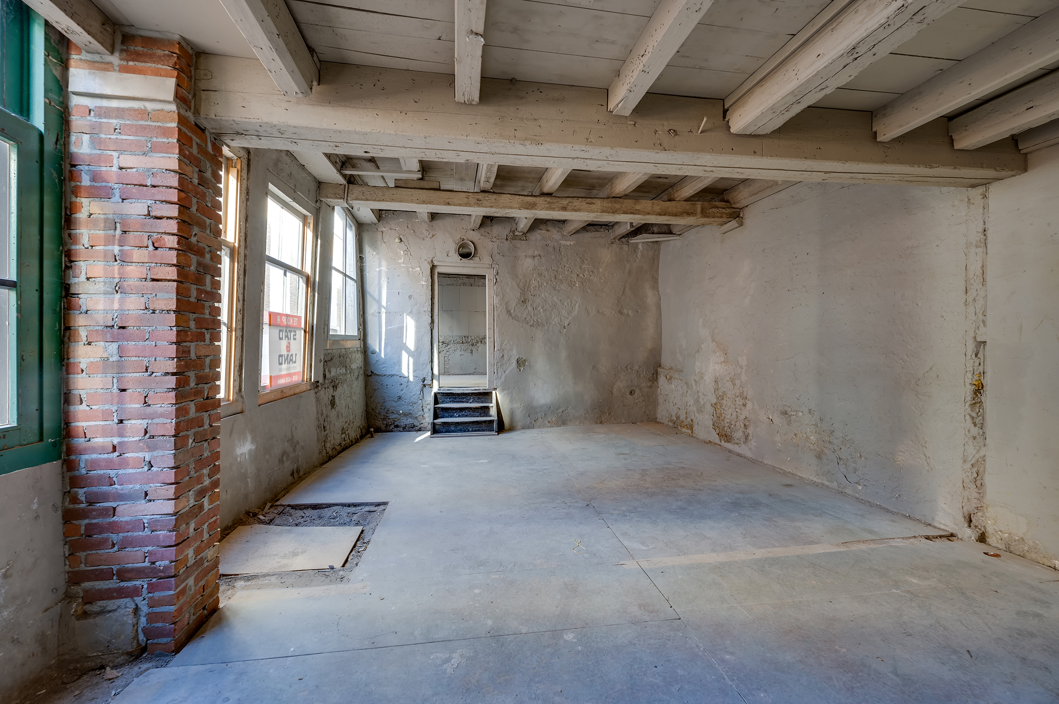 - Begane grond: entree, trapopgang, balkenplafond, open ruimtes met vrije indelingsmogelijkheden.