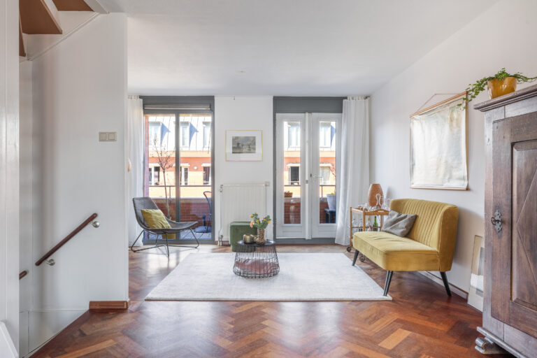 Ruim en karakteristiek stad appartement (type “Statenwoning”) in een kleinschalig complex aan het Statenplein. De woning beslaat vier woonlagen en heeft de uitstraling en ruimte van een eengezinswoning. De indeling is speels en praktisch, met veel wooncomfort op verschillende niveaus.