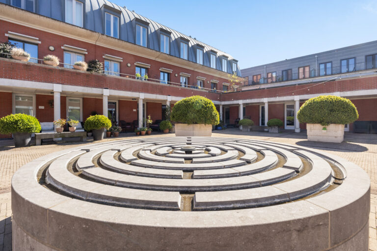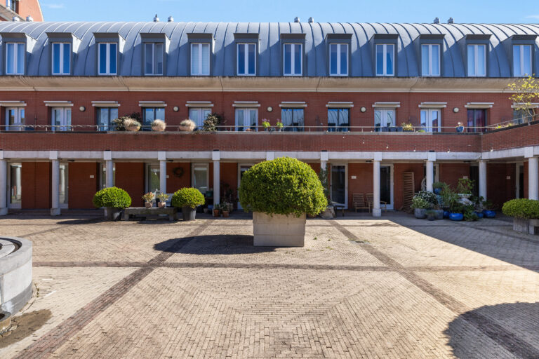 De woning ligt aan een fraai binnenplein met zuilengalerij, zitbanken, plantenbakken en een natuurstenen fontein. Het complex is voorzien van een lift en biedt daarmee comfortabel wonen in de binnenstad, met alle voorzieningen op loopafstand.