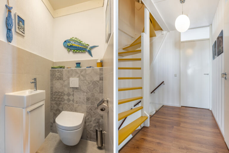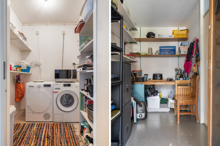 In de hal bevindt zich tevens de wasruimte/bijkeuken, waar ook een magnetron aanwezig is die achterblijft.