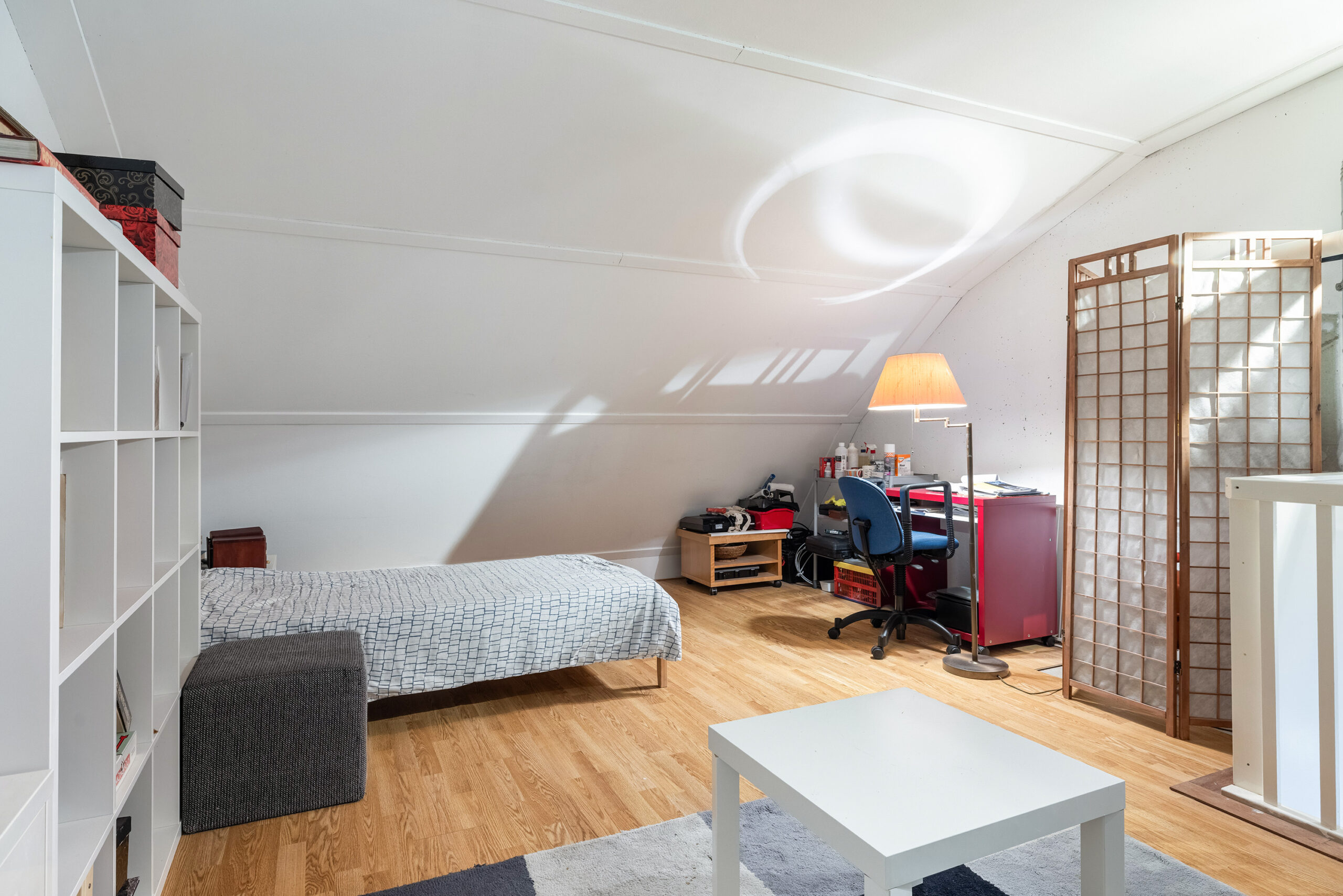 Bereikbare zolderruimte met een stahoogte van circa 2,5 meter. De ruimte is geschikt als logeerkamer, hobbyruimte, bergruimte of werkkamer. Hier bevindt zich ook de cv-ketel en de mechanische ventilatie-unit.
