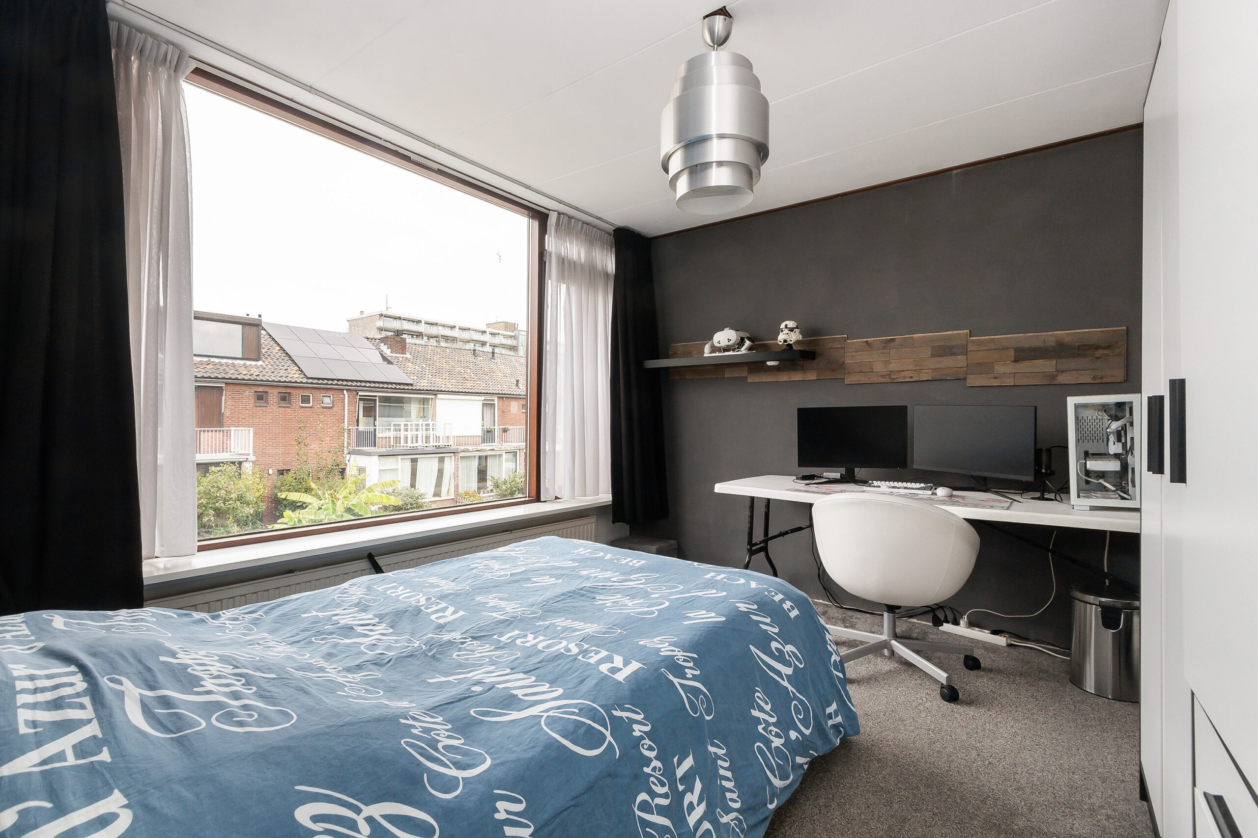 De achterste slaapkamers beschikken over rolluiken en inbouwspots. De grootste kamer heeft toegang tot een zonnig balkon op het zuiden. De derde slaapkamer ligt aan de voorzijde van de woning.
