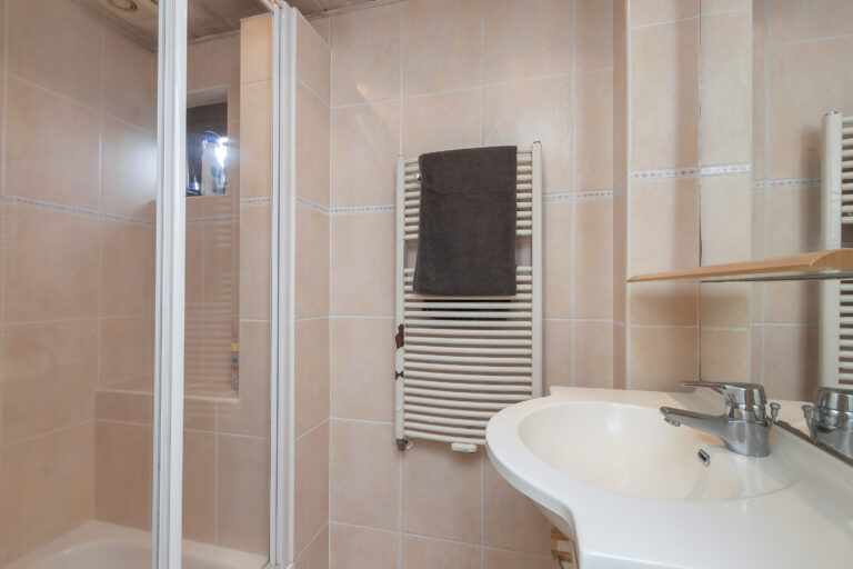 De volledig betegelde badkamer is voorzien van een douchecabine, designradiator en wastafelmeubel met bergkast en spiegel. Een slimme optie is om één van de slaapkamers op te offeren voor een grotere badkamer, terwijl de huidige badkamer kan worden omgevormd tot toilet en/of wasruimte.