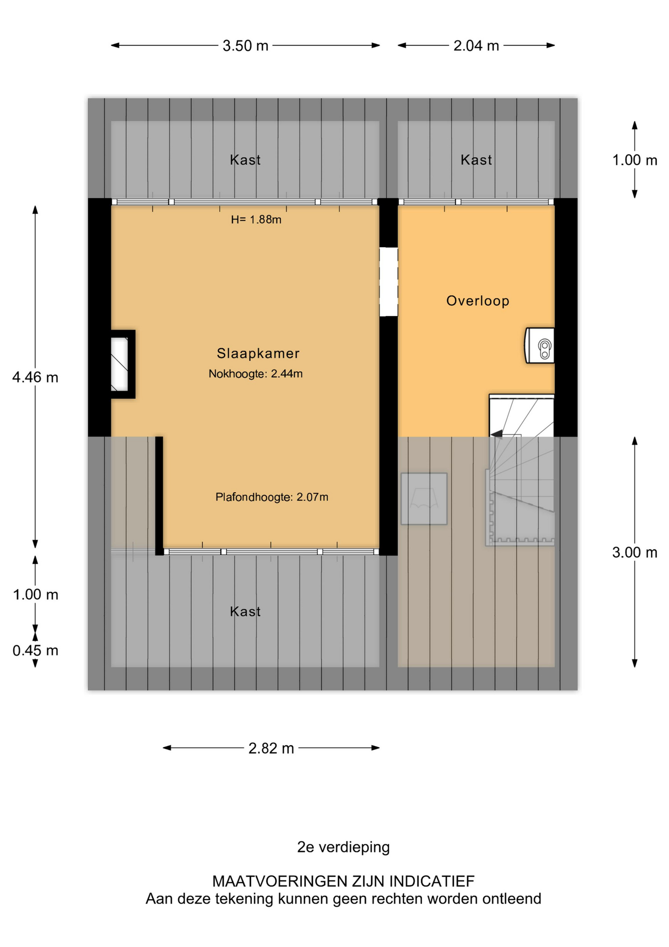 De tweede verdieping is bereikbaar via een vaste trap en vergroot door een nokverhoging en dakkapel. Hier bevindt zich een overloop/voorzolder en een ruime vierde slaapkamer.